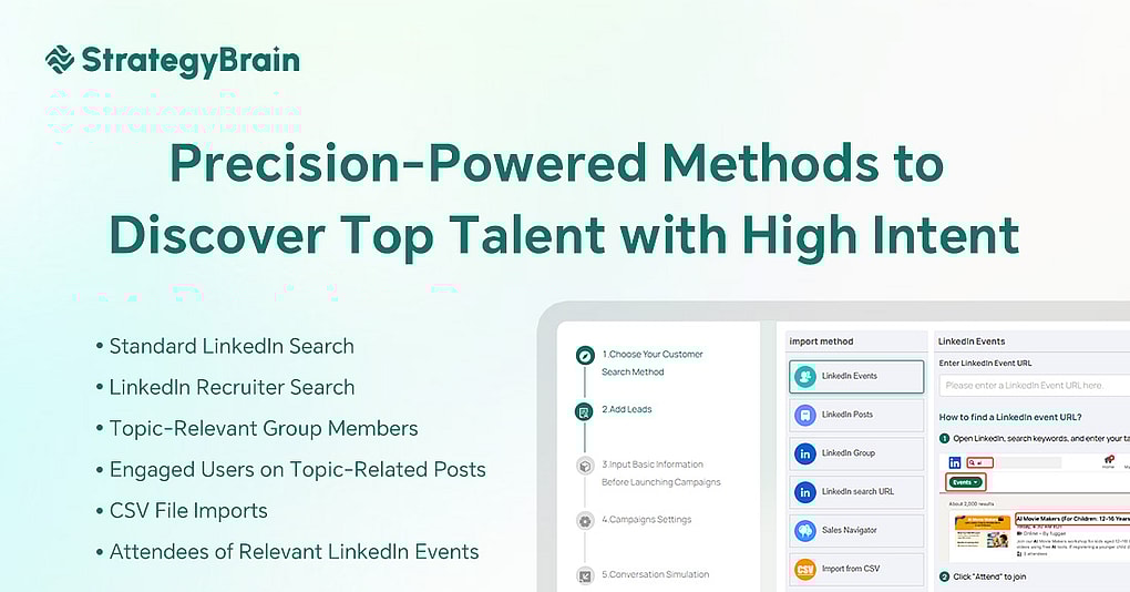 Beyond standard LinkedIn search and LinkedIn Recruiter search, StrategyBrain AI Recruiter supports: