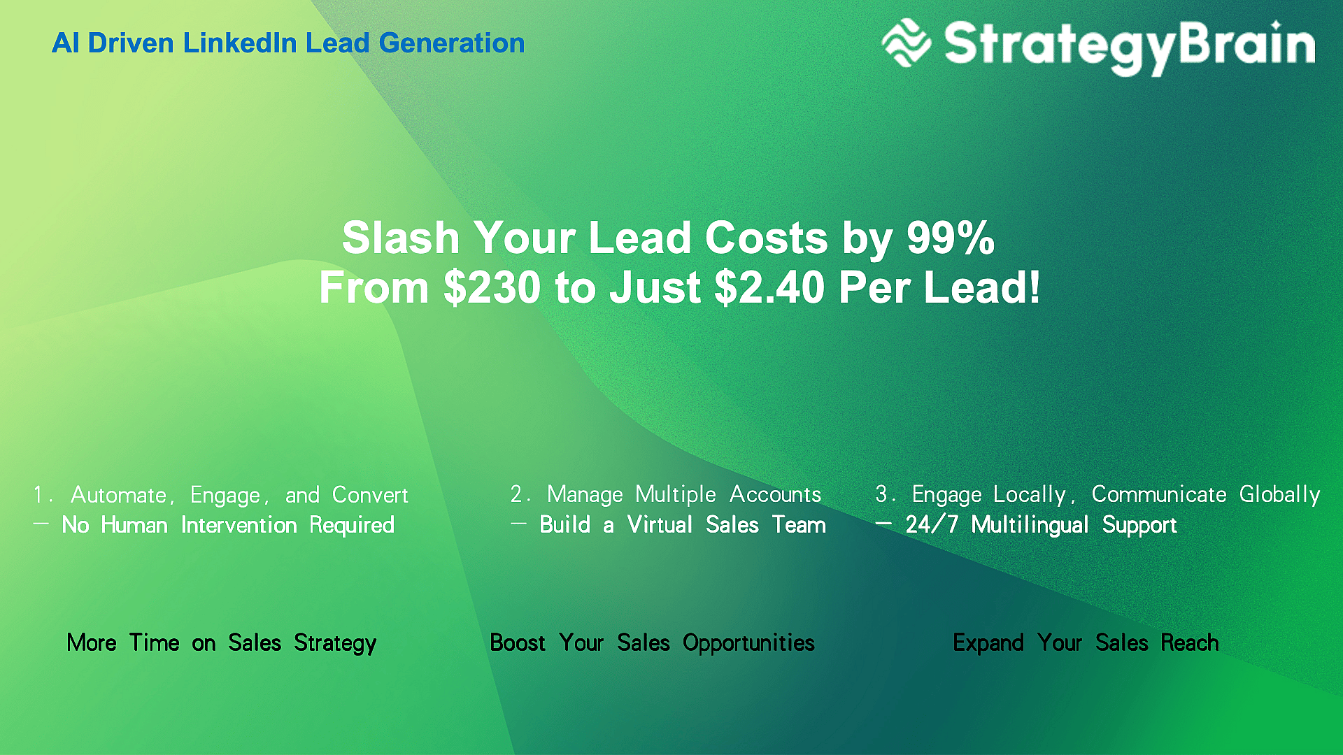 StrategyBrain’s AI Sales Rep exemplifies the future of LinkedIn sales automation by combining AI-driven capabilities with affordability and ease of use. Its multilingual support, personalized messaging, and optimized lead generation workflows ensure maximum efficiency. The platform excels in managing various lead generation formats, supporting customized lead gen templates and flexible lead forms—ideal for scaling outreach and entering global markets.