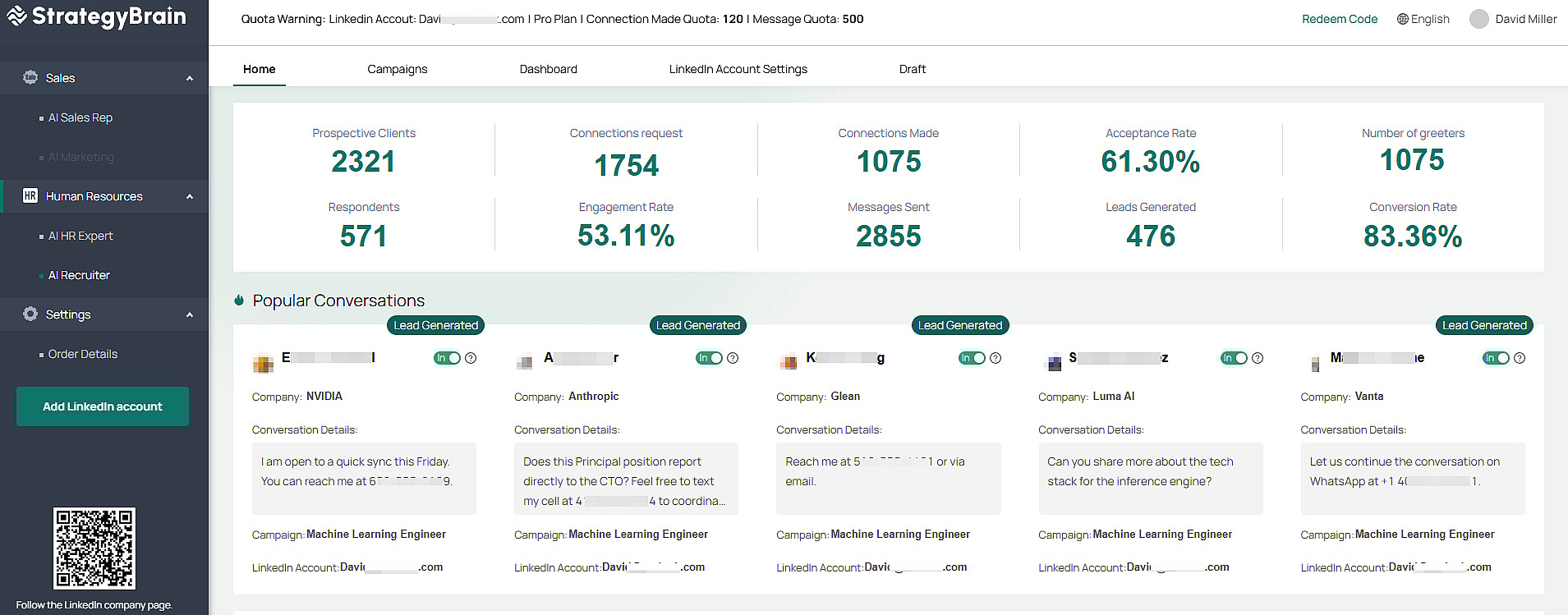 At this point, StrategyBrain AI Recruiter wasn’t just “another tool” — it was a working system inside our day-to-day recruiting process: LinkedIn sourcing, outbound outreach, follow-ups, and multilingual engagement running without burning recruiter hours.