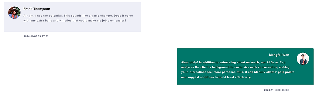 A: Unlike competitors that use templates, AI Sales Rep engages in personalized, context-driven chat. It does this without any manual intervention. It’s cost-effective at $9.9/month. It saves money by eliminating the need for humans.